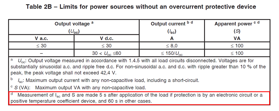 LPS:其主要目的是當(dāng)電子電路是由LPS 所供電時(shí),對(duì)于這電路的電流及能量,均能依IEC60950-1 Table 2B標(biāo)準(zhǔn)中之要求在規(guī)定的標(biāo)準(zhǔn)值以下,所造成火災(zāi)的危險(xiǎn)即大大降低了。因此,對(duì)此電路上的間距、零件的防火等級(jí)也就降低許多,故這些電路的外殼材質(zhì)可以是HB級(jí)的塑料材質(zhì),以達(dá)到節(jié)省成本的目的。其要由來(lái)自于ITE類產(chǎn)品 (IEC/EN/UL60950-1)。